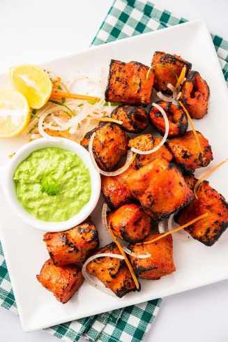 A tangy and zesty soya chaap marinated with fresh lemon juice and mild spices for a refreshing, flavorful taste.